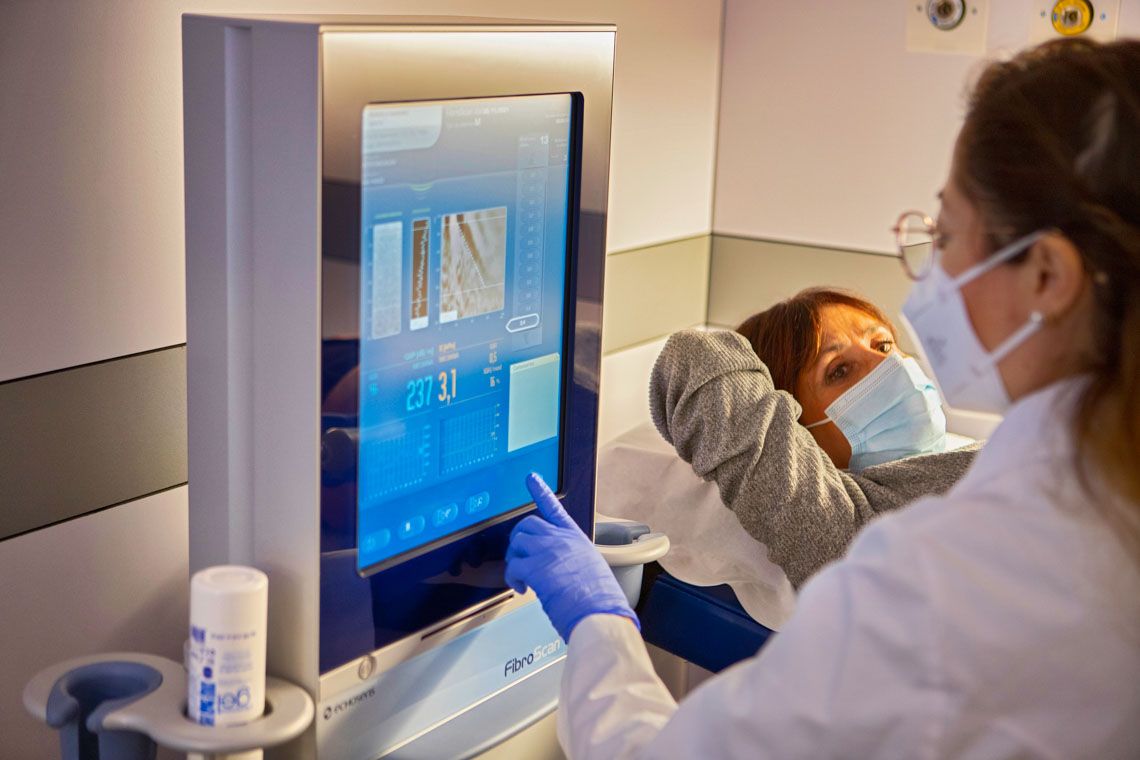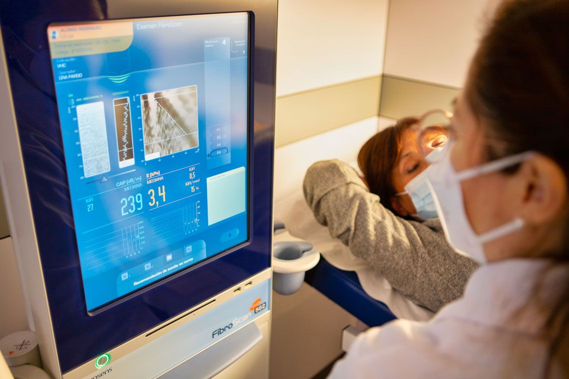 En el Servicio de Hepatología, además de los equipos de Ecografía, disponemos del FibroScan & CAP, una tecnología con la cual podemos estudiar la Fibrosis hepática evaluando la elasticidad del hígado y la Esteatosis hepática.