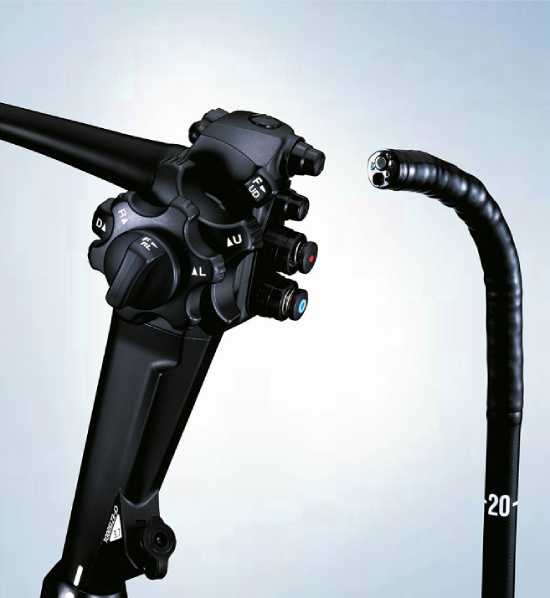 Nuevo sistema ErgoGrip, que hace al endoscopio más ergonómico para agarrar mejor y darle más estabilidad. Se reduce el peso y una accesibilidad a los mandos y botones del endoscopio mucho más práctica.