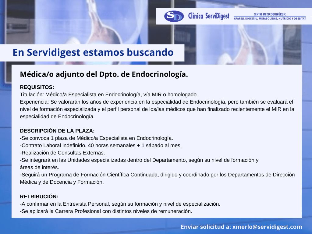 En ServiDigest estamos buscando médico especialista en endocrinología para compartir una realidad eficiente de salud y atención al paciente.